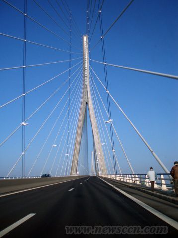 這是一座1995年1月才開始啟用的新橋,連接著翁弗勒爾和勒阿弗爾兩個城鎮(zhèn)。它是鋼索承重橋,很像金門大橋之類的懸索橋,但支撐橋身的鋼索直接從橋塔連到橋身。