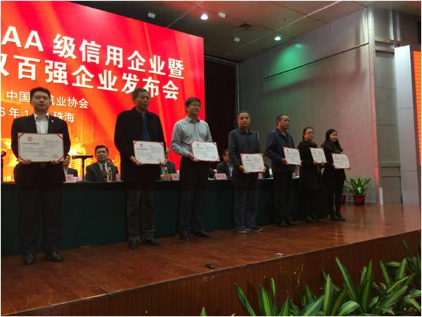 2016年1月7日,中國建筑業(yè)協(xié)會在珠海隆重召開全國建筑業(yè)AAA級信用企業(yè)暨中國建筑業(yè)雙百強(qiáng)企業(yè)發(fā)布會,向我公司在內(nèi)的共277家2015年度全國建筑業(yè)AAA級信用企業(yè)和榮獲2014年度雙百強(qiáng)的企業(yè)頒發(fā)獎牌和證書,我公司很榮幸的作為企業(yè)代表上臺領(lǐng)取了AAA級信用企業(yè)證書。
