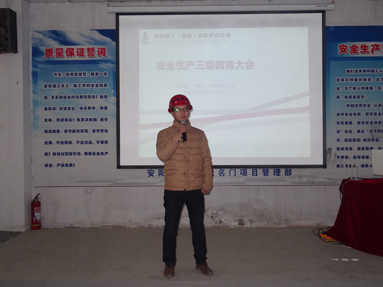 為了提高工人安全意識(shí),排除工地安全隱患,杜絕安全事故發(fā)生,海悅名門(mén)項(xiàng)目部于2016年3月15日,利用午休時(shí)間,召開(kāi)了本年度的三級(jí)安全教育培訓(xùn)大會(huì),海悅名門(mén)項(xiàng)目所有人員和公司其他項(xiàng)目上的安全員一同參加,約計(jì)300余人。會(huì)上首先為大家放映了安全教育短片,然后分別請(qǐng)公司工程部馮亮部長(zhǎng)、海悅名門(mén)項(xiàng)目經(jīng)理賈成偉、副經(jīng)理張磊、安全主管崔相平對(duì)本項(xiàng)目的一線員工進(jìn)行了一二三級(jí)安全教育培訓(xùn)。臺(tái)下工人聽(tīng)的認(rèn)真,臺(tái)上領(lǐng)導(dǎo)講的生動(dòng),整場(chǎng)大會(huì)井然有序。