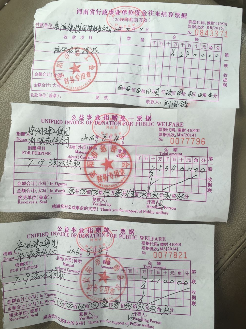 7月19日,我市遭遇歷史罕見強(qiáng)降雨過程,部分縣(市)區(qū)發(fā)生了嚴(yán)重的洪澇災(zāi)害,為幫助受災(zāi)的群眾重建家園,公司領(lǐng)導(dǎo)發(fā)出捐款倡議,在短短一天半時(shí)間里,辦公室共收到來自機(jī)關(guān)、分(子)公司、駐外項(xiàng)目共計(jì)452人的善款,金額達(dá)57400元。其中,包含7月28日,公司首先組織的12名勞模捐助的2900元善款,辦公室將這些善款全部上交市慈善總會(huì)。