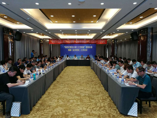 為貫徹落實《國務(wù)院辦公廳關(guān)于大力發(fā)展裝配式建筑的指導(dǎo)意見》文件精神,逐步建立完善覆蓋設(shè)計、生產(chǎn)、施工和使用維護全過程的裝配式建筑標準規(guī)范體系的要求,依據(jù)《國務(wù)院關(guān)于印發(fā)深化標準化工作改革方案的通知》和《住房城鄉(xiāng)建設(shè)部辦公廳關(guān)于培育和發(fā)展工程建設(shè)團體標準的意見》,中國建筑業(yè)協(xié)會組織編寫的《裝配式混凝土建筑施工工藝規(guī)程》團體標準,于7月26日至28日在武漢召開了編寫組第四次工作會議。