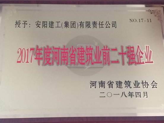 集團(tuán)公司再獲"河南省建筑業(yè)前二十強(qiáng)企業(yè)"等榮譽(yù)