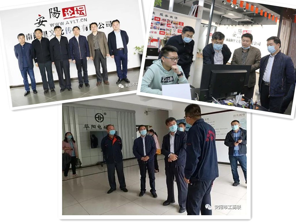 調(diào)研組認(rèn)真聽(tīng)取了疫情以來(lái)安陽(yáng)市工商聯(lián)主動(dòng)擔(dān)當(dāng)作為、積極履行職責(zé)的工作舉措和成效;實(shí)地走訪(fǎng)了安陽(yáng)宏源車(chē)輪、利華制藥、艾爾旺新能源公司、華陽(yáng)電磁鐵制造公司、及河南阿里文化傳媒等民營(yíng)企業(yè)。