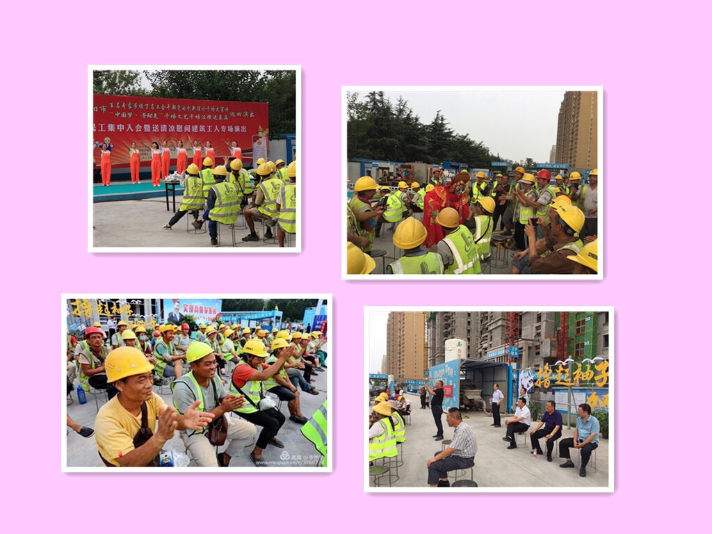 7月21日下午,農(nóng)民工集中入會暨送清涼慰問建筑工人專場演出活動,在安陽建工集團(tuán)海悅名郡工程項目施工現(xiàn)場舉行,安陽市總工會黨組成員、副主席朱繼衡,安陽市城建交通水利工會主席梁曦、副主席靳遠(yuǎn),安陽市建筑業(yè)項目工會聯(lián)合會主席郜慶,安陽市建筑業(yè)協(xié)會秘書長陶思孝,建筑業(yè)協(xié)會副秘書長、安陽建工集團(tuán)董事劉艷軍,安陽建工集團(tuán)工會主席馬松林,安陽建工集團(tuán)副總經(jīng)理劉民等相關(guān)同志,來到工地現(xiàn)場參加了活動。
