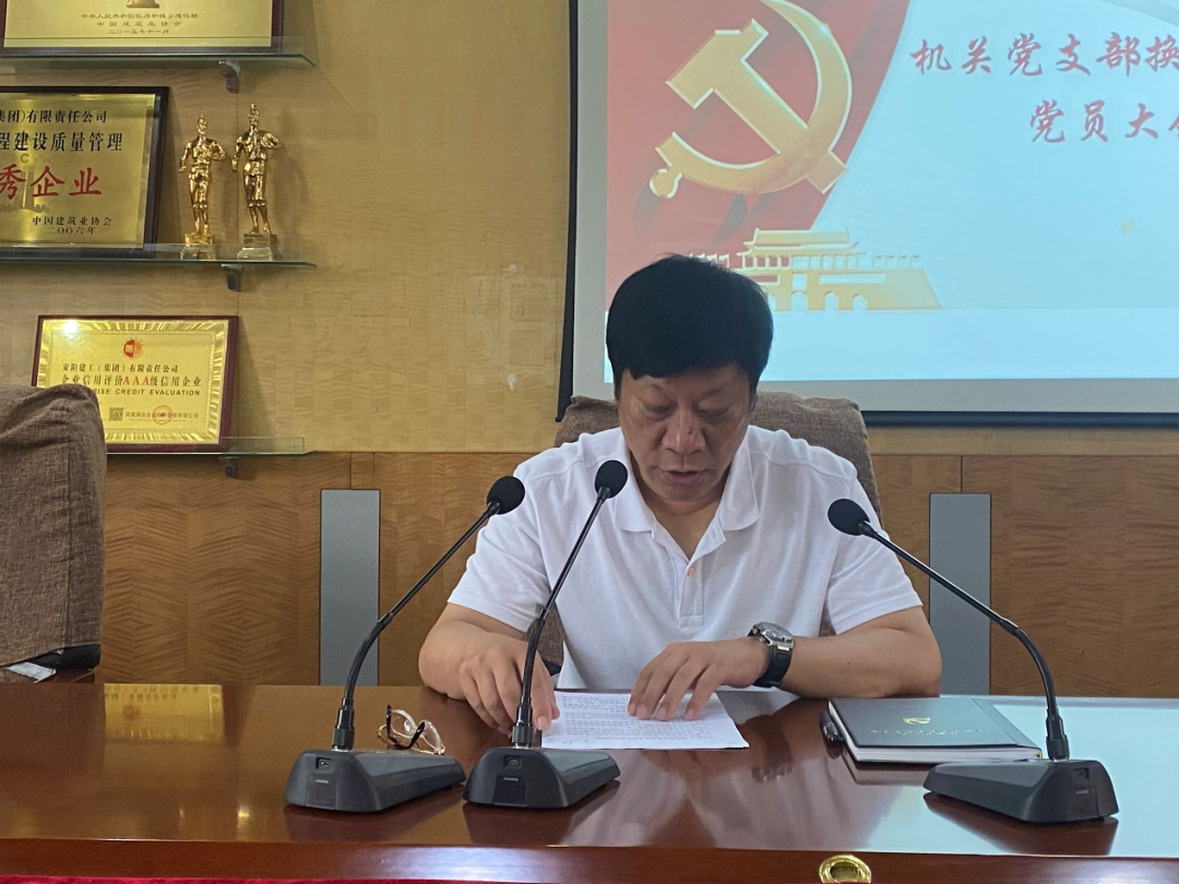 2022年7月22日,中共安陽建工(集團)有限責任公司委員會機關黨支部在公司三樓會議召開全體黨員大會,機關黨支部委員聶磊主持會議,會上,機關黨支部書記常新艷同志作了三年黨支部工作報告,總結(jié)了機關黨支部在思想建設、組織建設、作風建設、黨建引領等方面的工作成績和存在的不足,并提出了今后工作思路。全體黨員一致表決同意上屆黨支部的工作報告。