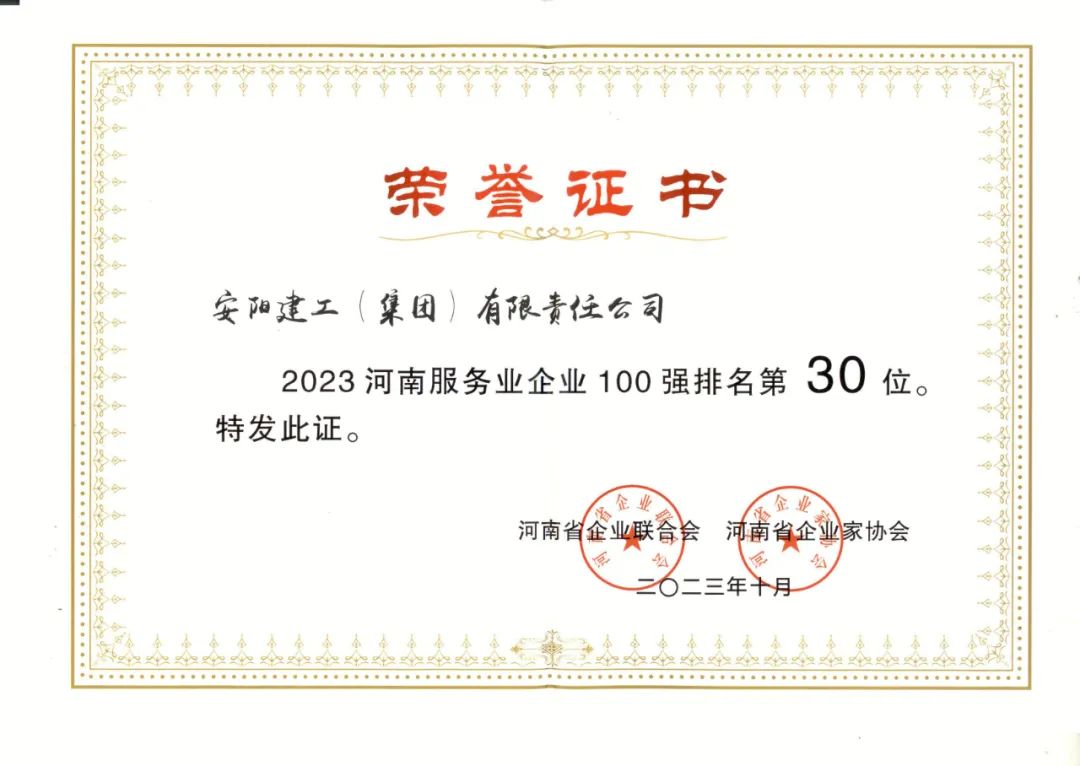 近日,河南省企業(yè)聯(lián)合會、河南省企業(yè)家協(xié)會聯(lián)合發(fā)布2023河南企業(yè)100強、2023河南制造業(yè)企業(yè)100強、2023河南服務業(yè)企業(yè)100強榜單,我集團公司再次喜獲2023河南服務業(yè)企業(yè)100強榮譽!