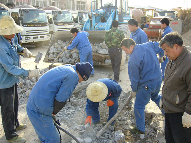 2004年初,六號車遠征少洛(少林寺——鄭州)高速載譽歸來,主車司機崔國慶看著整修過的罐體,心中有些不悅,原來,修補攪拌葉片時電焊把罐體上的漆燒掉了幾片,俗話說的好:汽車的頭,司機的臉,這不僅影響了車的整體美,而且有悖于公司“攪拌運輸車是流動的廣告,是公司的戶外形象,是古城安陽街頭一道亮麗的風景線”的要求。怎么辦?崔國慶二話沒說,從倉庫領出手提除銹機,打磨,除銹,刷防銹漆。司機班長楚樹林也熱情幫忙,兩人拉氣泵,自己動手當起油工。剛開始沒有經(jīng)驗,噴出的色澤、薄厚不一,但很快就找到了竅門,經(jīng)過幾天忙碌,六號車變的如同新車。隨后,裝載機司機吳愛國也把裝40重新噴漆。泵工班維修混凝土泵已稱得上專家,馬士兵,李建民,孟慶印,張志秀,楊坤個個是一把好手,精心保養(yǎng)與維修,使2號、3號泵使用至今從沒換過大件,受到拖泵生產廠家售后人員的交口稱贊。2004年底,攪拌主機出現(xiàn)漏漿,其他部位分別出現(xiàn)不同程度的磨損,生產技術部決定:以我為主,適當聘請外部專業(yè)人員。機修、泵工、生產、司機班員工以及管理人員全力以赴,并且根據(jù)多年使用的經(jīng)驗,對不很合理、問題多發(fā)部位進行整改,收效甚大。從此,利用節(jié)假日維修主機成了不成文的規(guī)定。2007年春節(jié)前后近40天時間,公司對攪拌主機、管理系統(tǒng)進行大規(guī)模改造,并新增骨料倉、粉料倉各一座,其中有一半多的工作是公司員工動手做的。