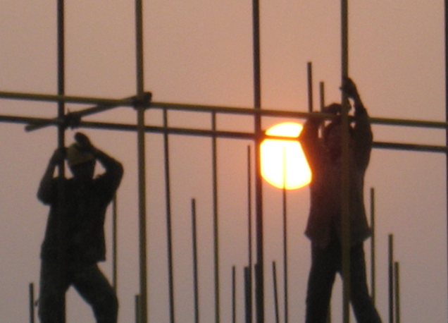 安陽建工集團(tuán)承建的新鄉(xiāng)博物院工程是新鄉(xiāng)市的重點(diǎn)工程項(xiàng)目,建成后是一座用于服務(wù)公眾、傳承文化、展示形象的標(biāo)志性建筑。為了工程的順利建成,從2007年11月5日開工以來,我們舉全公司之力,從建設(shè)最高的質(zhì)量出發(fā),調(diào)動(dòng)了最好的技術(shù)人員,一流的施工設(shè)備和經(jīng)驗(yàn)豐富的施工隊(duì)伍,投入了大量的人、財(cái)、物等各種資源,全力投入到了為新鄉(xiāng)市的重點(diǎn)工程建設(shè)之中。目前該該工程進(jìn)入主體一層收尾階段,當(dāng)前正值春暖花開,為了抓住這大好的施工季節(jié),趕工期、保質(zhì)量,新鄉(xiāng)博物院項(xiàng)目部全體員工正在夜以繼日、加班加點(diǎn)的緊張施工,他們正在用辛勤的汗水編織美好的明天。(圖為職工在夕陽的映襯下搭設(shè)腳手架)