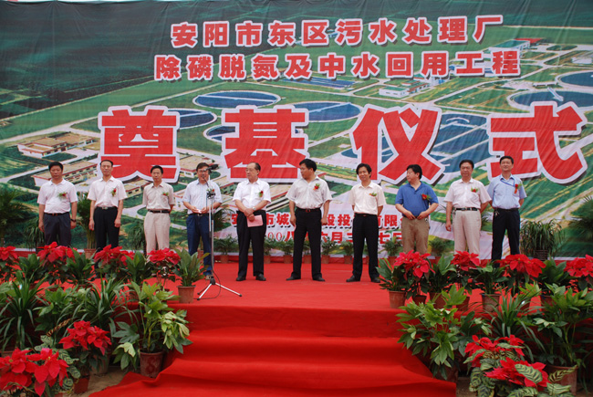 6月27日,集團(tuán)公司承建的安陽市東區(qū)污水處理廠除磷脫氮及中水回用工程舉行開工奠基儀式,這是我市繼晃家村污水處理廠工程竣工后,為進(jìn)一步落實科學(xué)發(fā)展觀、改善城區(qū)人居環(huán)境、構(gòu)建和諧社會而實施的又一生態(tài)工程和民心工程。安陽市副市長倪豫洲等領(lǐng)導(dǎo)出席了奠基儀式,安陽市城市建設(shè)投資有限公司、首創(chuàng)水廠、安陽建工集團(tuán)及監(jiān)理單位的領(lǐng)導(dǎo)、員工參加了儀式。