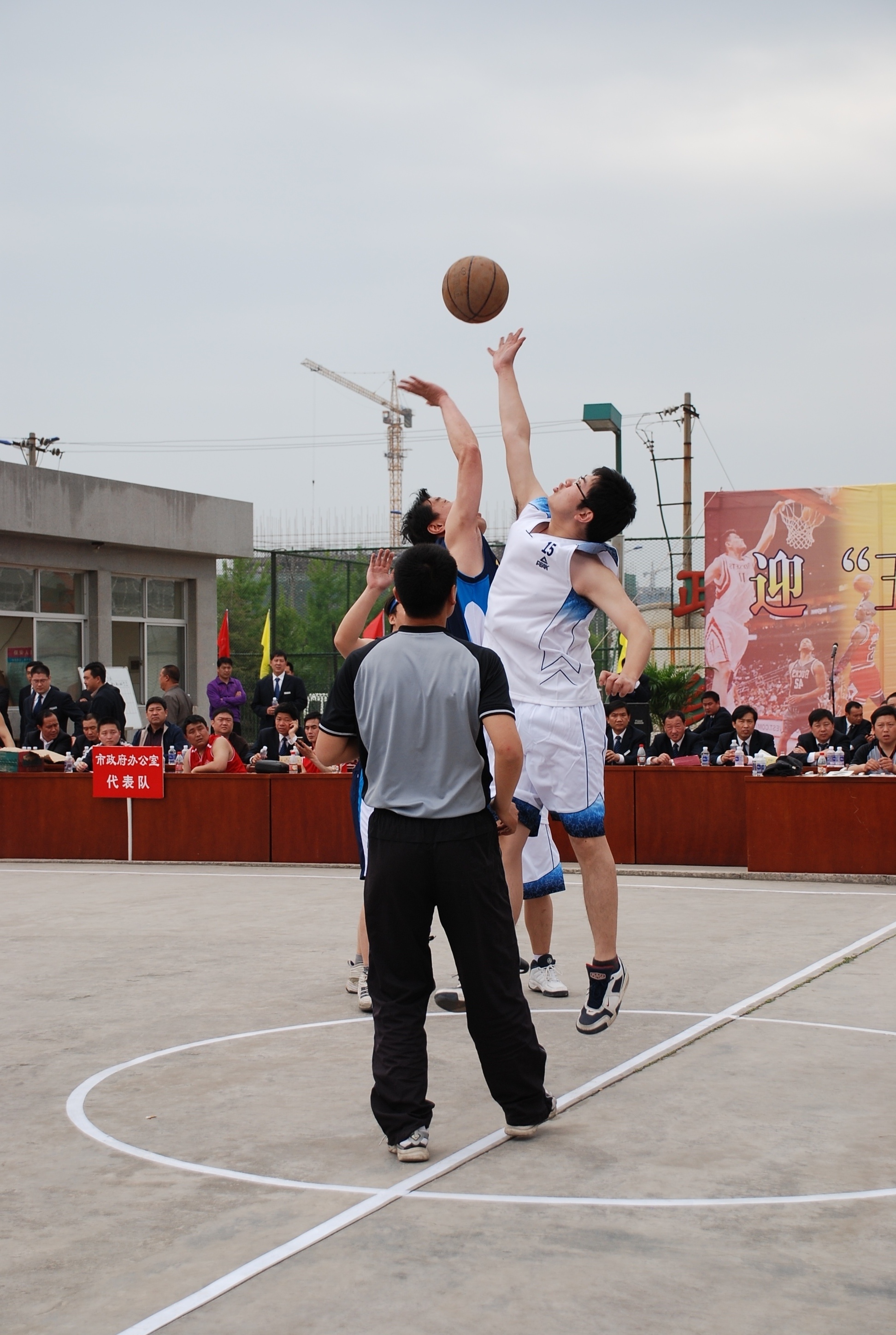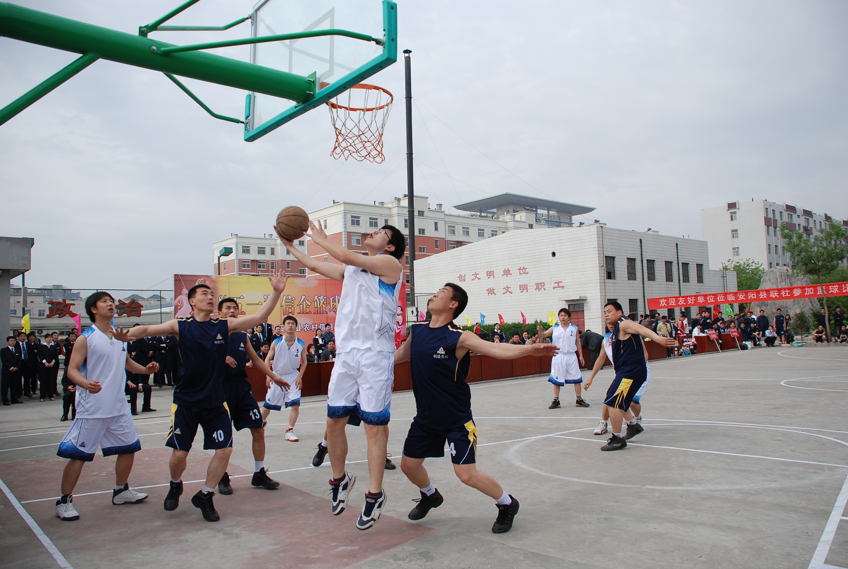 公司謝總(右二)出席籃球賽開幕式 工會馬主席帶隊參加比賽 安陽建工 15:5 勝銅冶隊 爭奪籃板球 安陽建工 15:4 勝市檢察院隊 進(jìn)球了!