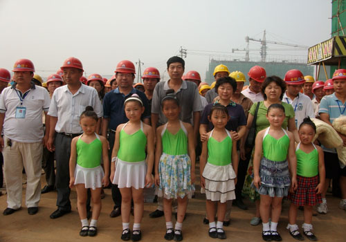 7月15日上午,安陽市總工會(huì)副主席宋忠平、保障部部長(zhǎng)呂啟霞、城建水利工會(huì)副主席董江紅一行,來到我公司承建的如火如荼的博書苑工地,看望在高溫時(shí)節(jié)奮戰(zhàn)在施工一線的建筑工人,并為他們送去了毛巾、風(fēng)油精、汗衫、《農(nóng)民工知識(shí)讀本》等防暑降溫慰問品,市總工會(huì)給工地帶來了關(guān)懷帶來了愛,同時(shí)也為工地帶來了歡快活潑的少兒舞蹈“愛的人間”,小朋友們用稚嫩的聲音深情地說:工人叔叔辛苦了!她們的熱情感染了在場(chǎng)的每個(gè)人。宋主席一邊給工人送上慰問品,一邊關(guān)切地詢問他們的工作、生活情況,囑咐要注意身體健康、防暑降溫。他說:“博書苑是安陽市最大的經(jīng)濟(jì)適用房,一直受到市各級(jí)領(lǐng)導(dǎo)的關(guān)注,你們冒著酷暑仍然堅(jiān)守在工作崗位上,辛苦了,我向你們表示感謝。”他叮囑工地要合理安排工期計(jì)劃,一定要讓工人注意合理休息。公司副總經(jīng)理郝志峰、工會(huì)主席馬松林到現(xiàn)場(chǎng)參加了活動(dòng),郝經(jīng)理表示:我們要更加努力的工作,克服高溫酷暑,全力投入生產(chǎn),以實(shí)際行動(dòng)感謝市工會(huì)的關(guān)心支持!面對(duì)還將持續(xù)下去的高溫天氣,我們要繼續(xù)發(fā)揚(yáng)艱苦奮斗、無私奉獻(xiàn)的精神,堅(jiān)守工作崗位,安全生產(chǎn),安全度夏。