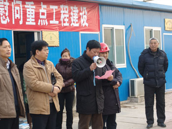 公司工會(huì)主席馬松林同志主持了儀式,集團(tuán)公司總經(jīng)理謝海如同志致歡迎詞,市人大副主任、市總工會(huì)主席聶孟磊出席了送溫暖儀式。電子信息學(xué)校項(xiàng)目經(jīng)理王振東作了表態(tài)發(fā)言,一定會(huì)將工會(huì)領(lǐng)導(dǎo)的關(guān)懷轉(zhuǎn)化為工作的動(dòng)力,搞好安全生產(chǎn),保質(zhì)保量完成工程建設(shè)。