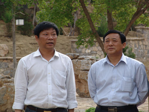 市領(lǐng)導(dǎo)于自強(qiáng)與公司董事長謝海如指導(dǎo)參觀安陽園 |