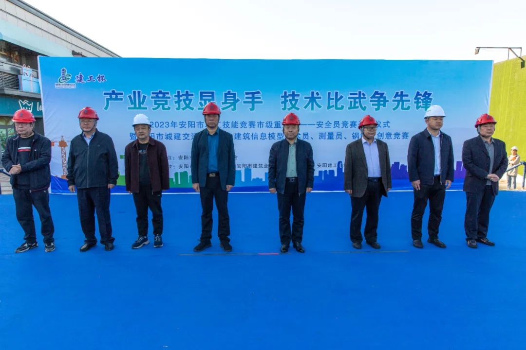 為深入貫徹黨的二十大精神,落實全國工會十八大的相關(guān)要求,號召工人階級緊密團(tuán)結(jié)在以習(xí)近平同志為核心的黨中央周圍,銳意進(jìn)取,開拓創(chuàng)新,在激情奮斗中彰顯自我價值,在全市建筑行業(yè)大力弘揚工匠精神, 造就一支高素質(zhì)的建筑產(chǎn)業(yè)工人隊伍, 營造勞動光榮、技能寶貴的社會風(fēng)尚和精益求精的敬業(yè)風(fēng)氣,2023年安陽市職工技能競賽市級重點賽——安全員競賽開賽儀式暨安陽市城建交通水利行業(yè)建筑信息模型技術(shù)員、測量員、鋼筋工創(chuàng)意競賽于10月20號上午在安陽建工集團(tuán)海悅翡翠華庭項目部隆重開幕。