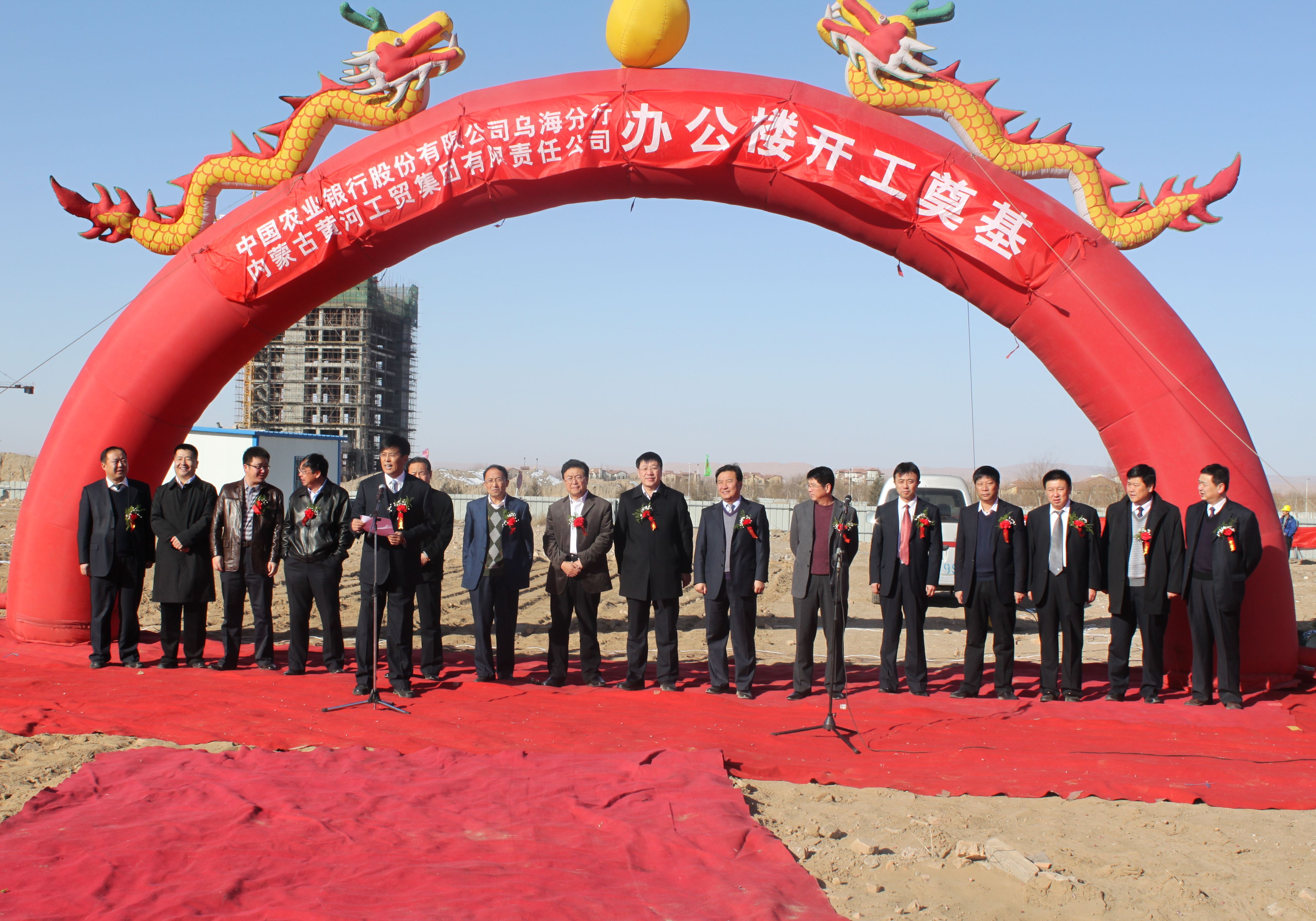 2011年3月2日由安陽建工集團(tuán)中標(biāo)施工的中國農(nóng)業(yè)銀行股份有限公司烏海分行辦公樓開工奠基儀式在內(nèi)蒙古烏海舉行。這一天,春光明媚,陽光燦爛,開工奠基儀式現(xiàn)場花團(tuán)錦簇,彩旗飄揚(yáng),十多個懸掛著巨幅標(biāo)語的彩球聳入云天。該工程建筑面積35733m2,地下2層,地上21層,工程造價8600余萬元。