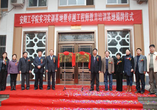 在一片祝福的掌聲中,歡慶的鞭炮聲中,孫院長、高局長為“安陽工學(xué)院實習(xí)實訓(xùn)基地”揭牌;王慶飛處長、謝經(jīng)理為“安陽工學(xué)院卓越工程師教育培訓(xùn)基地”揭牌。揭牌儀式對雙方來說是一次雙贏的戰(zhàn)略之舉,它標(biāo)志著雙方合作邁向了新的高潮!