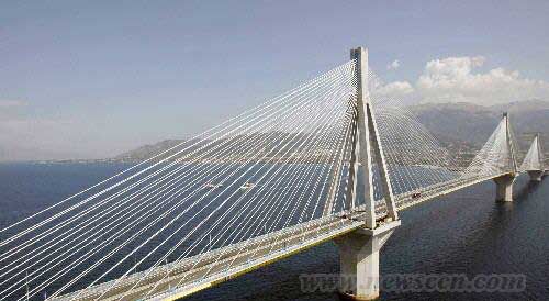 數(shù)千年的地殼運動造成了希臘的伯羅奔尼薩半島和大陸的分離,而今年8月建成的、橫跨科林斯海灣里永-安蒂里永大橋將被自然界分離了幾千年的這兩塊陸地連接在了一起。它不僅僅是世界上最長的斜拉橋—橋面直接用懸索吊在龍門架上,而且還是世界上技術最先進的橋梁之一。