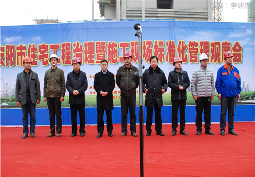 11月17日上午,來自安陽市各區(qū)、縣的各建設(shè)單位、監(jiān)理單位和施工企業(yè)的項(xiàng)目負(fù)責(zé)人、技術(shù)負(fù)責(zé)人代表共計(jì)550余人齊聚我公司海悅名門項(xiàng)目工地,參加由安陽市住建局、安陽市建筑工程質(zhì)量監(jiān)督站組織的安陽市住宅工程質(zhì)量常見問題專項(xiàng)治理暨施工現(xiàn)場質(zhì)量標(biāo)準(zhǔn)化觀摩會。