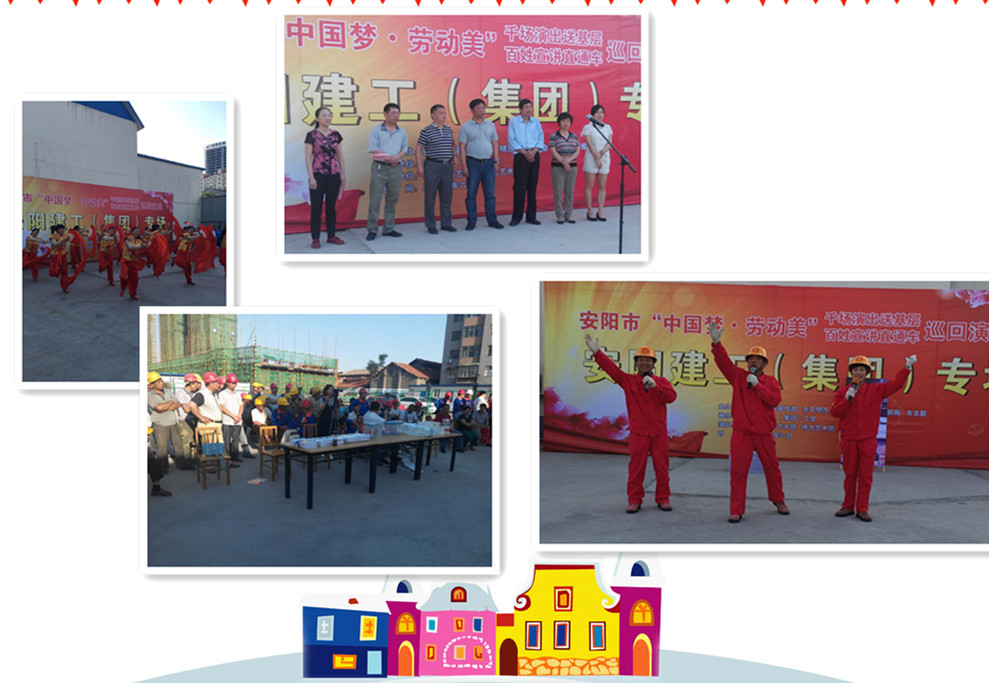 由我公司工會(huì)承辦的“送文化、送清涼”活動(dòng),在香山甲第項(xiàng)目部拉開序幕,安陽市總工會(huì)副主席宋主席、安陽市總工會(huì)保障部呂部長、安陽市城建水利工會(huì)梁主席、我集團(tuán)公司董事長謝海如、公司工會(huì)主席馬松林等領(lǐng)導(dǎo)參加了活動(dòng)儀式,活動(dòng)中大家觀看了“中國夢(mèng) 勞動(dòng)美”千場(chǎng)文化送基層巡回演出安陽建工專場(chǎng)的首場(chǎng)演出,接受了總工會(huì)領(lǐng)導(dǎo)及公司工會(huì)為項(xiàng)目部工人送去的慰問品。同時(shí),公司黨委書記謝海如還為基層黨支部送去《習(xí)近平總書記系列重要講話讀本》等黨建書籍。今年,我們工會(huì)把的“送文化、送清涼”結(jié)合在一起多站式開展,深入到一線項(xiàng)目部,呈現(xiàn)給大家的不僅僅是一臺(tái)臺(tái)思想性、藝術(shù)性、觀賞性和諧統(tǒng)一、樸素親切、生動(dòng)鼓勁的精彩文藝節(jié)目,更為重要的是包含了工會(huì)對(duì)建工一線員工的親切關(guān)懷,充分體現(xiàn)了工會(huì)關(guān)愛基層、情系農(nóng)民工的深情厚意。此項(xiàng)活動(dòng)將陸續(xù)在公司其他項(xiàng)目部繼續(xù)開展。 (聶磊)