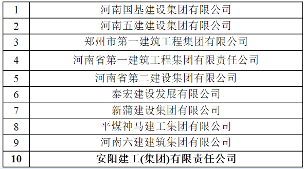 2016年度河南省建筑業(yè)前二十強(qiáng)企業(yè)名單