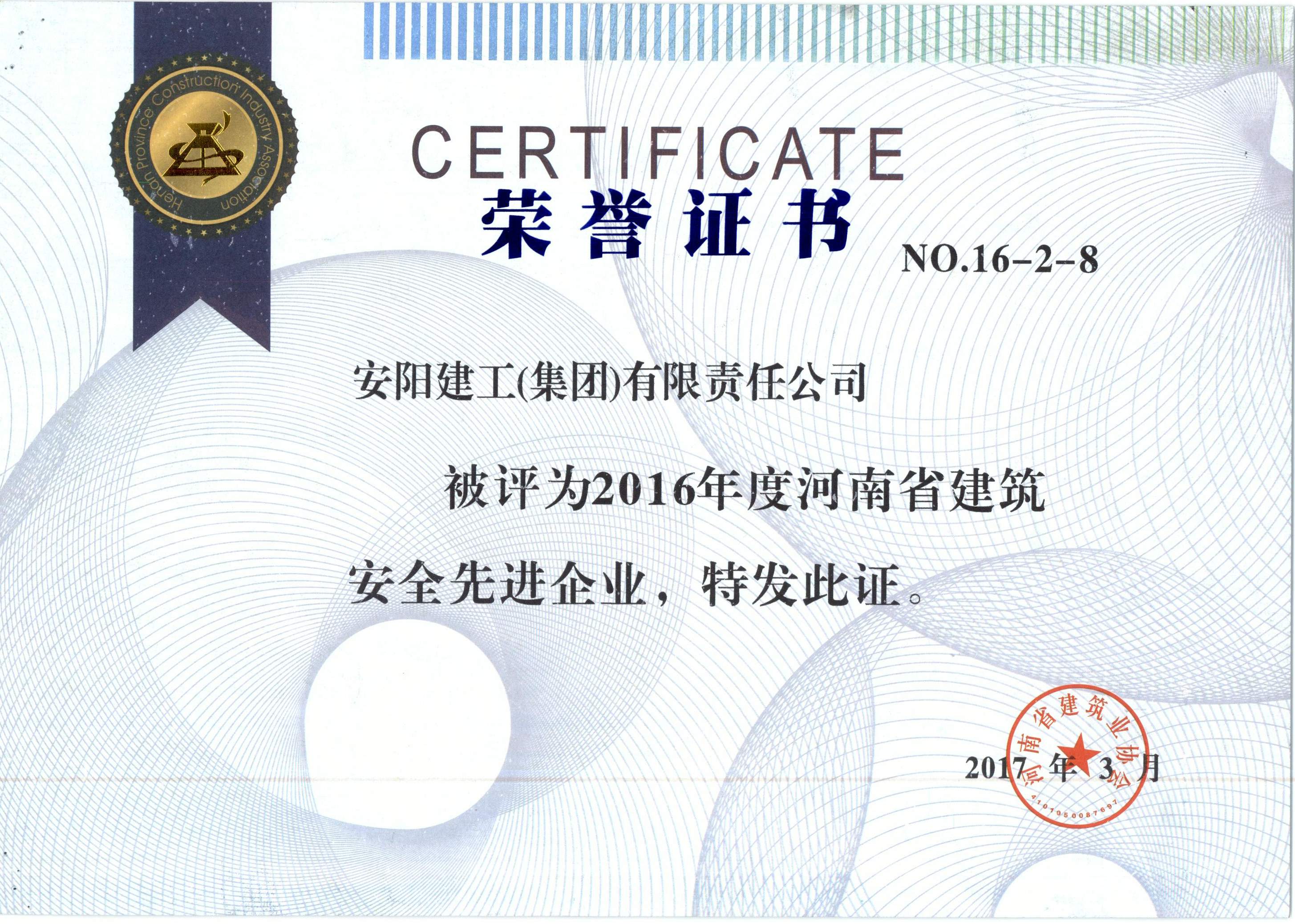 我公司被評(píng)為2016年度河南省建筑安全先進(jìn)企業(yè)