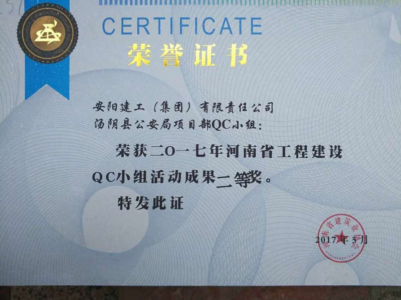 湯陰縣公安局項(xiàng)目部2017年榮獲省QC成果二等獎(jiǎng)