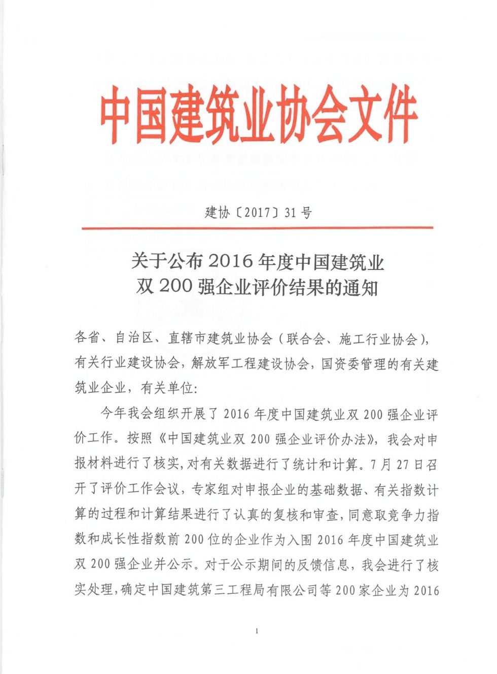 中國建筑業(yè)成長性200強企業(yè)評比由中國建筑業(yè)協(xié)會主辦,就建筑企業(yè)的經(jīng)營規(guī)模、資產(chǎn)規(guī)模、贏利能力、上繳稅金、科技、質(zhì)量、精神文明等方面對申報材料進行核實,對有關(guān)數(shù)據(jù)進行統(tǒng)計和計算。由專家組對申報企業(yè)的基礎(chǔ)數(shù)據(jù)、有關(guān)指數(shù)計算的過程和計算結(jié)果進行復核和審查,并對200強提名進行公示,確定名單。
