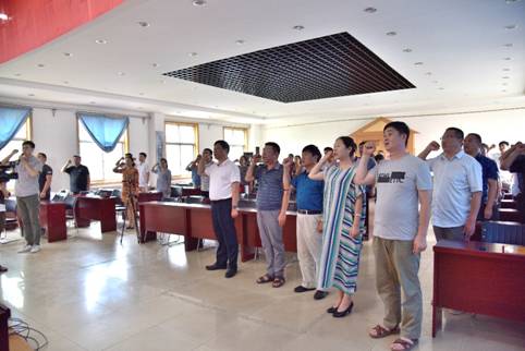 在安全部副部長魏鵬同志的帶領(lǐng)下,與會(huì)所有黨員全體起立,重溫了入黨誓詞。伴隨著與會(huì)黨員《沒有共產(chǎn)黨就沒有新中國》高亢的歌聲,我們展望黨和人民在新世紀(jì)的偉大征程,充滿必勝的信心和力量。