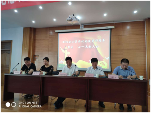 2019年7月6日,安陽建工(集團(tuán))紀(jì)念建黨98周年暨慶“七一”表彰大會在公司四樓會議室隆重召開。公司全體黨員、中層以上領(lǐng)導(dǎo)干部、分(子)公司班子成員共計(jì)90余人參加了會議。公司黨委成員在主席臺就坐,公司黨委副書記馬松林主持會議。
