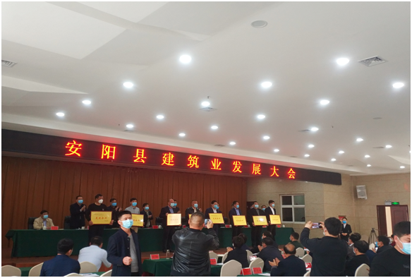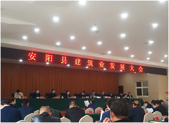 2020年4月7日下午,安陽縣建筑業(yè)發(fā)展大會在新大地賓館隆重召開。王紅兵、邢振東、蘇鴻莉、王培臣、蔡光偉等安陽縣(示范區(qū))縣級領導出席會議。會議由蔡光偉主持,并宣讀有關表彰獎勵文件??h(區(qū))直各重點單位,各鄉(xiāng)鎮(zhèn)黨委書記、鄉(xiāng)鎮(zhèn)長班子成員以及各行政村黨支部書記參加會議。