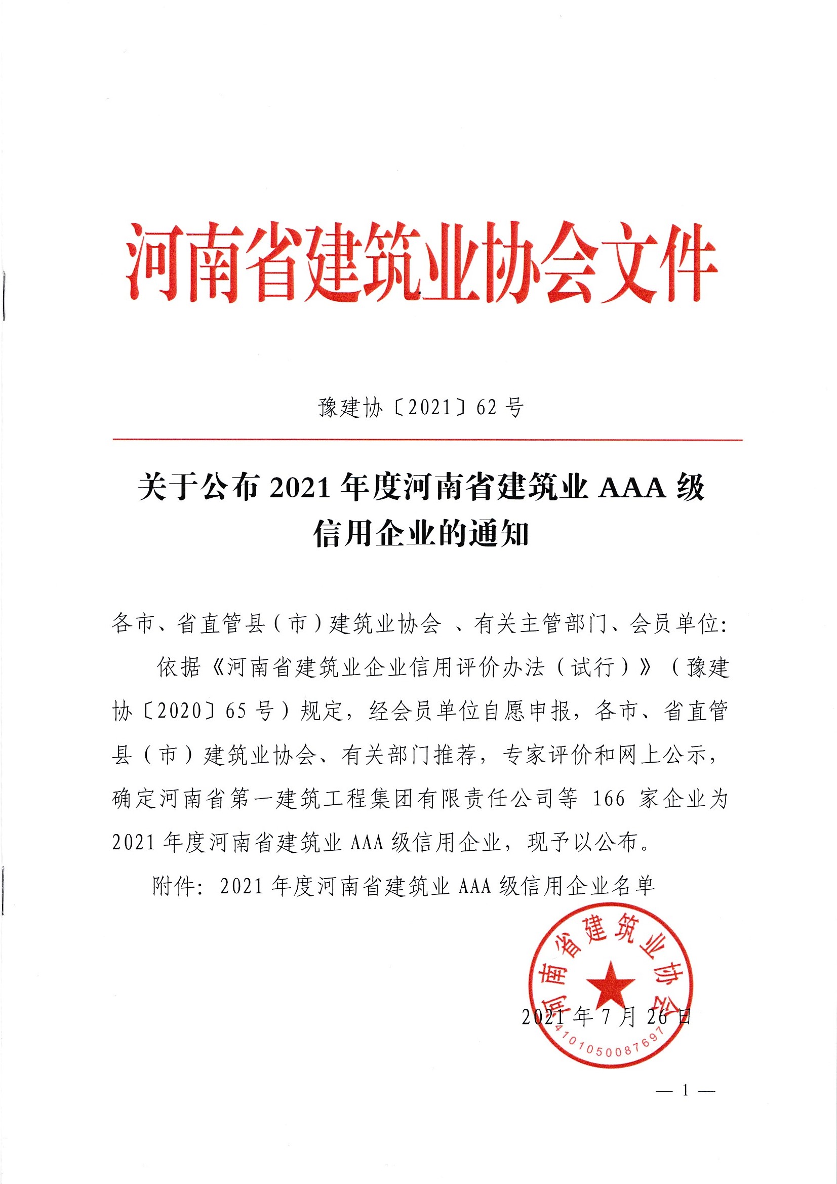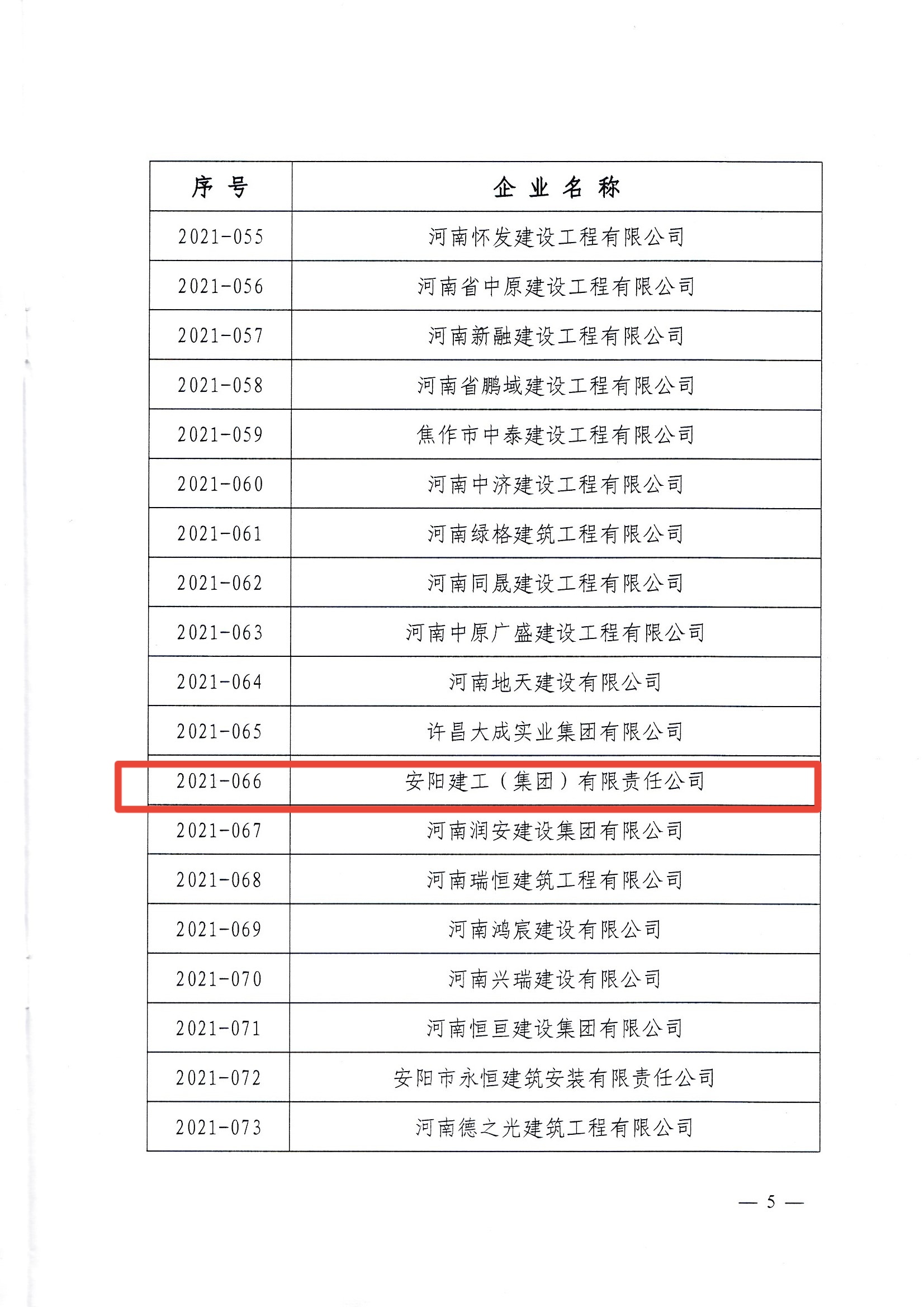 近日,河南省建筑業(yè)協(xié)會(huì)公布了“2021年度河南省建筑業(yè)AAA級(jí)信用企業(yè)”名單,安陽建工(集團(tuán))有限公司榮獲河南省建筑業(yè)“AAA級(jí)信用企業(yè)”榮譽(yù)稱號(hào)。