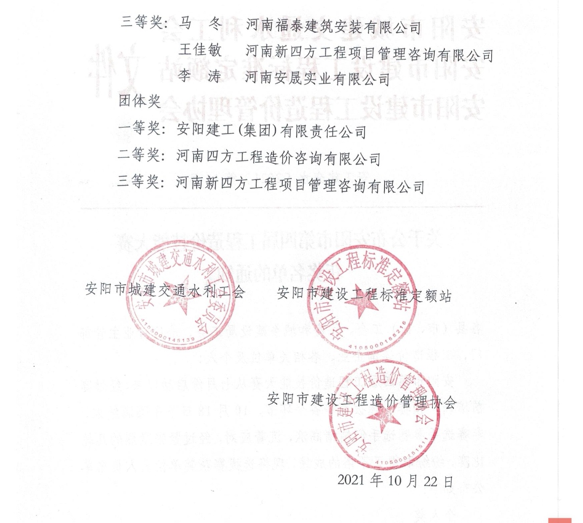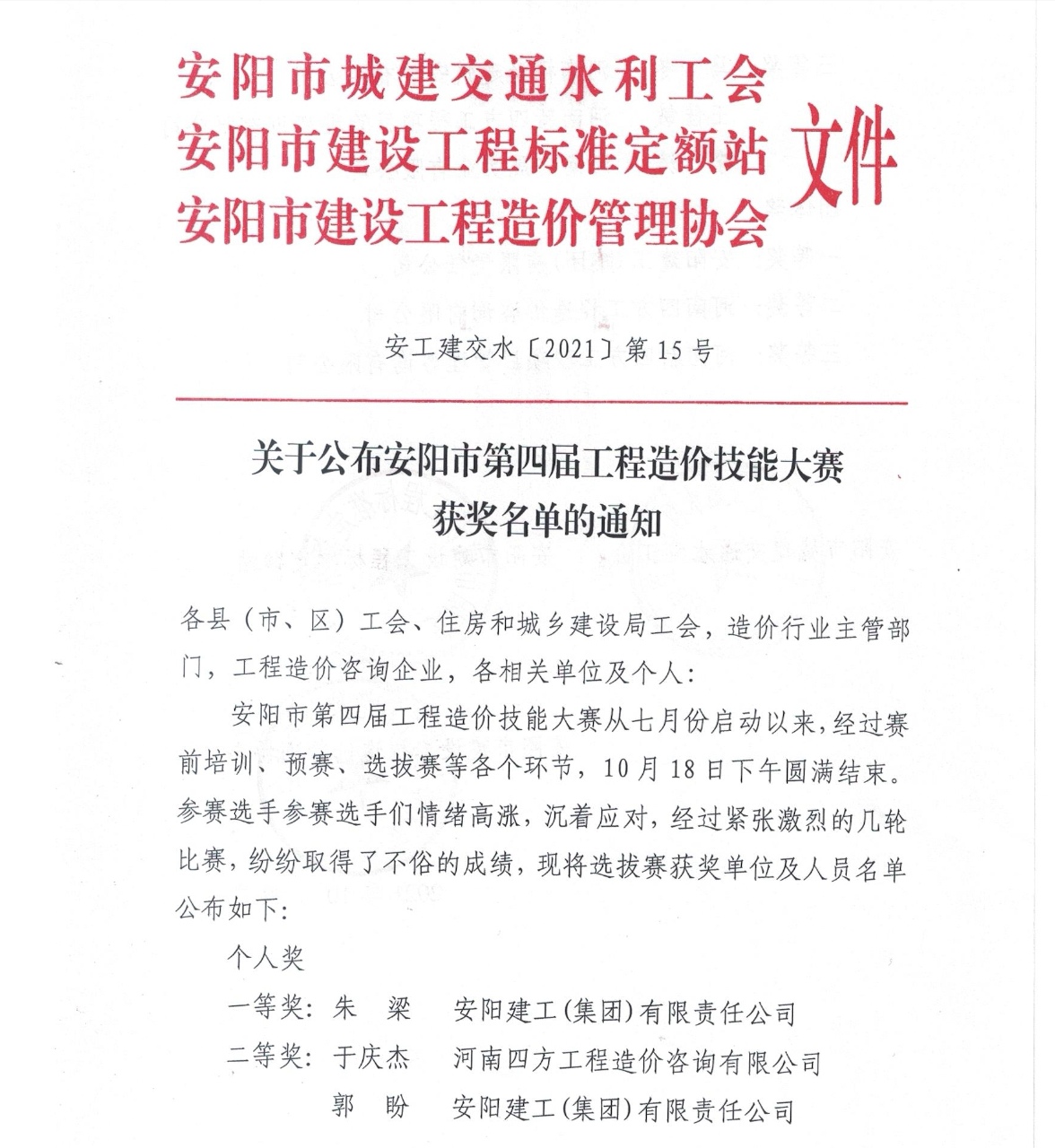 喜訊!安陽(yáng)建工集團(tuán)在“安陽(yáng)市第四屆工程造價(jià)技能大賽”中