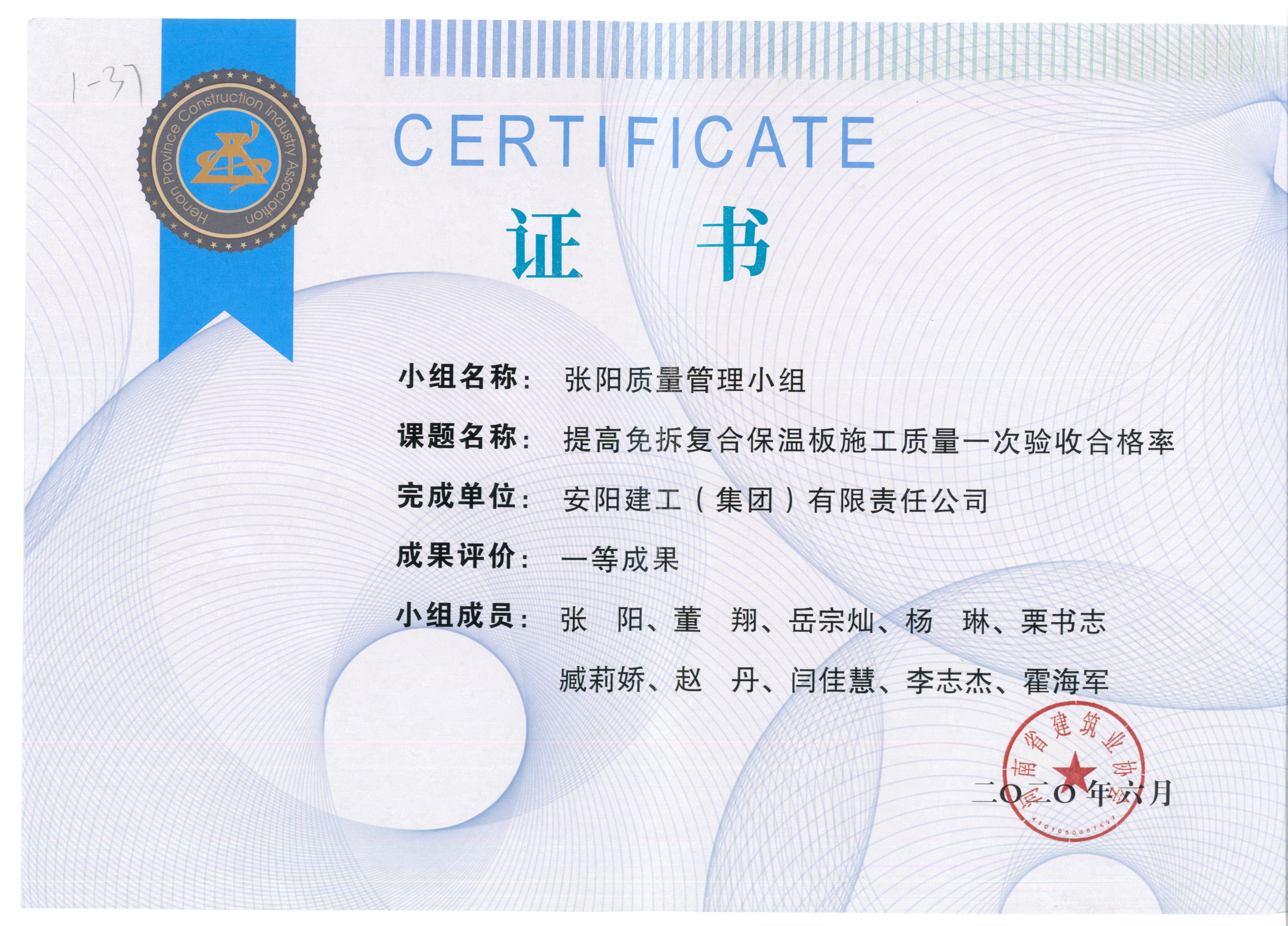 2020年集團(tuán)公司榮獲河南省建筑業(yè)質(zhì)量管理小組大賽一等獎(jiǎng)