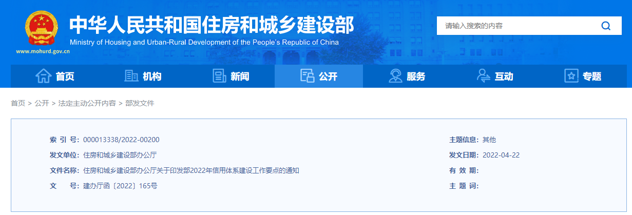 住房和城鄉(xiāng)建設(shè)部2022年