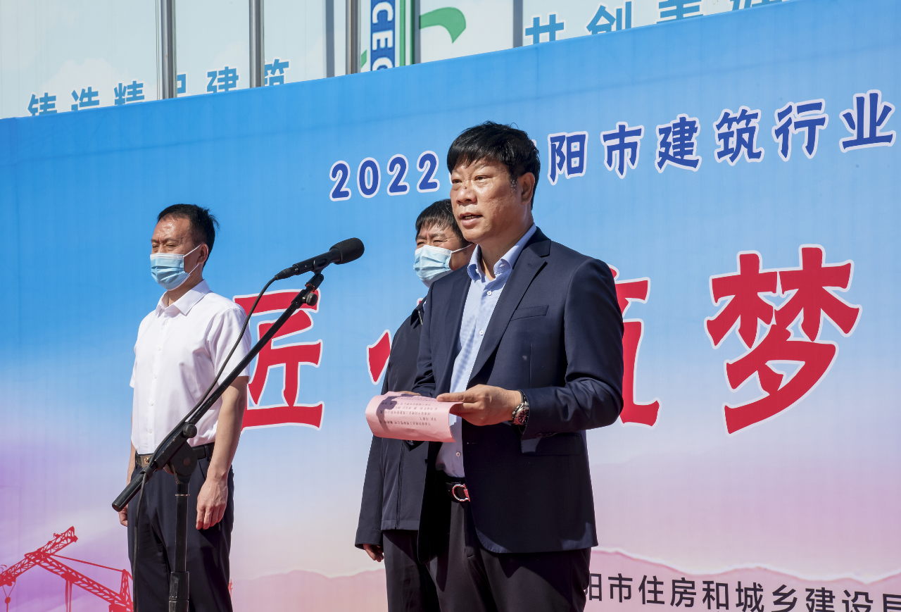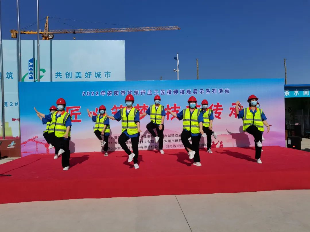 為深入學(xué)習(xí)貫徹習(xí)近平總書記致首屆大國工匠創(chuàng)新交流大會的賀信精神,進一步弘揚勞模精神、勞動精神、工匠精神,5月16日上午,2022年安陽市建筑行業(yè)“匠心筑夢 技藝傳承”工匠技能展示系列活動,在我集團公司承建的安陽師院綜合樓項目部舉辦。市人大常委會副主任、市總工會黨組書記、主席桑建業(yè),市總工會黨組成員、副主席、二級調(diào)研員劉勇謀,市住房和城鄉(xiāng)建設(shè)局黨組成員、二級調(diào)研員申文忠,市總工會四級調(diào)研員苗廣軍,市建筑業(yè)協(xié)會會長、公司董事長謝海如等參加活動。市城建交通水利工會主席梁曦主持開幕式。