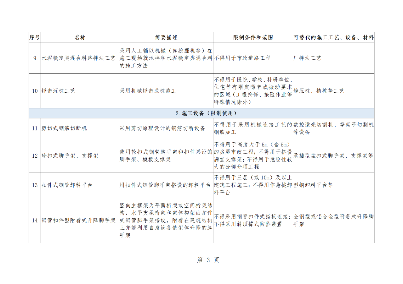 附件:房屋市政工程禁止和限制使用技術(shù)目錄(2022年版)(征求意見稿)