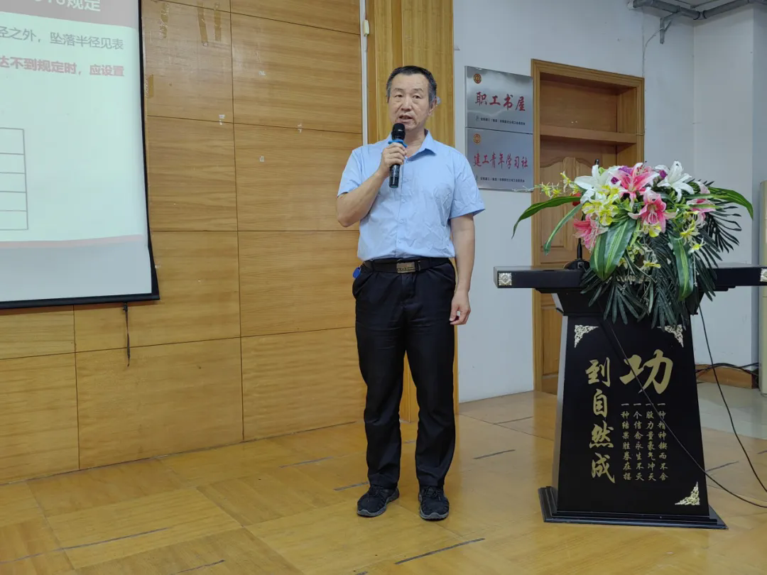 總工程師王磊結(jié)合《建筑施工高處作業(yè)安全技術(shù)規(guī)范》、《高處作業(yè)分級》等規(guī)范性條文,深入解讀安全通道與防護(hù)棚做法等常見問題并進(jìn)行了經(jīng)驗分享,強(qiáng)調(diào)按規(guī)范施工為安全生產(chǎn)保駕護(hù)航。
