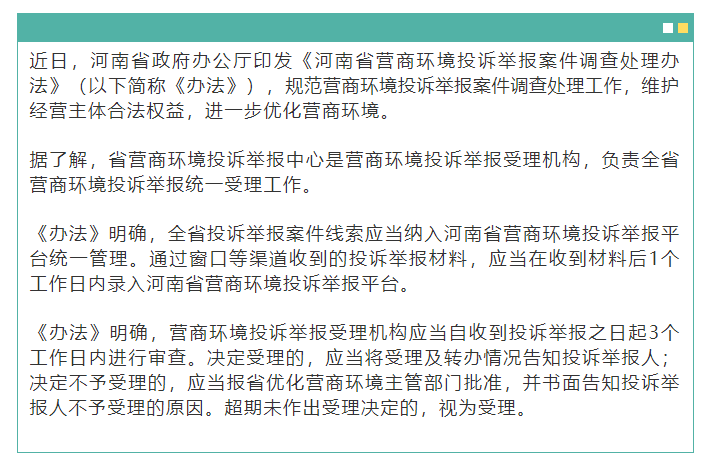 河南省營商環(huán)境投訴舉報(bào)案件調(diào)查處理辦法