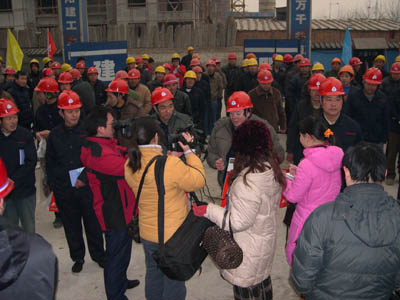 2008年1月10日是一個普通的日子,但對于建工(集團)廣廈工地上的農(nóng)民工來說卻是難忘的一天。這一天天氣格外寒冷,氣溫驟降給建筑工人戶外作業(yè)增加了勞動難度和強度。安陽建工(集團)各建筑工地上的工人師傅們和往常一樣仍堅守在各自的工作崗位上,依然認真工作、辛勤勞動著,他們絲毫沒有因為外部條件艱苦而影響了工作。安陽市總工會主席聶孟磊、副主席陰春生、保障部部長呂啟霞 、城建水利工會主席陳亮等一行在這一天帶著100件羽絨服、100本《農(nóng)民工知識讀本》和對廣大農(nóng)民工的一片關(guān)愛來到了廣廈新苑工地,為那里的農(nóng)民工送去了溫暖。公司領導謝海如、馬松林、鐘新安及市機關(guān)事務管理局廣廈新苑指揮部人員參加了這次送溫暖活動。公司黨委副書記、工會主席馬松林主持儀式。