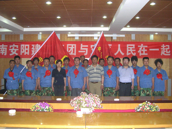 第一支安裝突擊隊隊長、安裝公司副經(jīng)理劉民代表突擊隊表態(tài):“安陽建工與災區(qū)人民在一起心連心,堅決服從組織安排,圓滿完成承建任務。”祝英雄們早日凱旋而歸!安全而歸!
