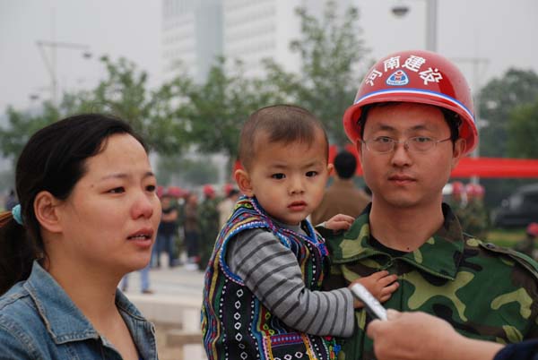 根據(jù)災(zāi)區(qū)援建任務(wù)的需要,接市援建指揮部的命令,我公司迅速?gòu)脑ㄍ粨絷?duì)預(yù)備隊(duì)員中挑選了13名優(yōu)秀隊(duì)員,在隊(duì)長(zhǎng)席宏偉的帶領(lǐng)下,攜帶翻斗車等機(jī)械設(shè)備,昨日早晨,在市政府副市長(zhǎng)倪豫州和建委主任高峰等領(lǐng)導(dǎo)的歡送下,啟程赴川。在此之前,公司領(lǐng)導(dǎo)專門召集了第三批赴川人員歡送會(huì),介紹了前期抗震救災(zāi)情況,提出了殷切的希望,并給每個(gè)隊(duì)員配發(fā)了服裝、安全帽等物品,并為全體隊(duì)員設(shè)宴壯行。