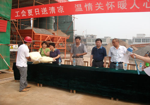 公司工會(huì)也為博書苑工地送來了特級(jí)綠豆和特級(jí)白糖,每年夏季在高溫季節(jié)工會(huì)組織慰問一線員工是公司一貫來的工作作風(fēng)。工會(huì)和和工程管理部一道將深入公司其他施工現(xiàn)場(chǎng),向冒高溫、戰(zhàn)酷暑的生產(chǎn)一線職工送上工會(huì)組織的關(guān)愛。
