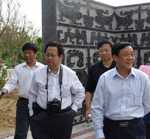 市領(lǐng)導(dǎo)于自強(qiáng)與市政府副秘書長李俊嶺指導(dǎo)參觀安陽園 |