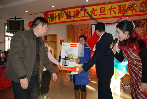 工會(huì)主席馬松林首先致新年賀詞,他說(shuō):2010年是不平凡的一年,公司全體員工一道精誠(chéng)合作,兢兢業(yè)業(yè),共同譜寫(xiě)了公司發(fā)展的新篇章,公司在紛繁復(fù)雜的社會(huì)經(jīng)濟(jì)環(huán)境下眾志成城,奮力拼搏,各項(xiàng)工作健康、穩(wěn)步、持續(xù)發(fā)展. 在新年來(lái)臨之際,馬主席代表公司領(lǐng)導(dǎo)班子對(duì)廣大員工一年來(lái)的艱苦勞動(dòng)、辛勤工作表示衷心的感謝!馬主席熱情洋溢的講話引來(lái)陣陣掌聲。
